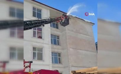 Yaya ve araç trafiğinin yoğun olduğu cadde ve sokakların yanı sıra başta okul binaları olmak üzere kamu kurumlarının çatılarında ve saçaklarında biriken kar, merdivenli itfaiye araçları kullanılarak kontrollü şekilde indiriliyor.