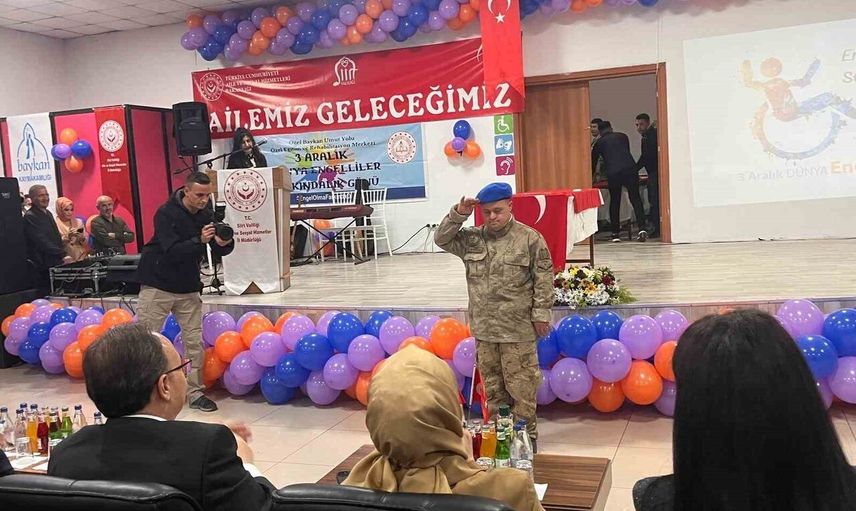 Siirt'te 3 Aralık Dünya Engelliler Günü kapsamında düzenlenen programda özel bireyler, engelli vatandaşlar ve aileleri bir düğün salonunda bir araya geldi. Etkinliklerde yer alan özel bireyler, askeri kamuflaj giyerek temsili bir yemin törenine katıldı ve günün anlamına uygun çeşitli faaliyetlere iştirak etti.