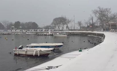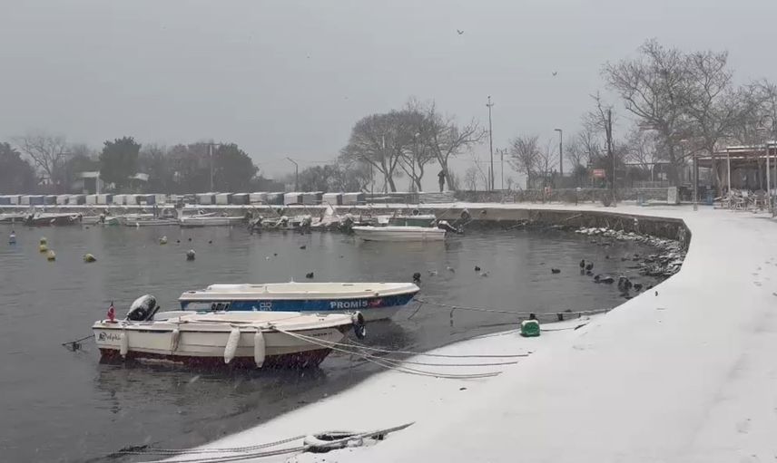 Silivri Sahili de kar örtüsüyle kaplanarak yağış sırasında görsel bir şölen oluşturdu. Bölgede kar yağışı aralıklarla devam ediyor.