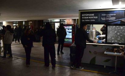 Bu kapsamda, 2025-2026 Akademik Yılı Güz Dönemi ara sınavlarına hazırlanan öğrenciler için 9-15 Kasım tarihleri arasında, sınav haftası boyunca, kütüphane önünde akşam 21.00-23.00 saatleri arasında çorba, çay ve kahve ikramı yapılacaktır.