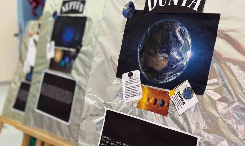Çocuklar önce gezegenleri keşfederek etkinliğe başladılar; ardından kes-yapıştır ve boyama çalışmaları yaparak el-göz koordinasyonlarını ve ince motor becerilerini pekiştirdiler.