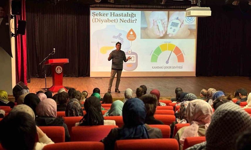 Dahiliye Uzmanı Doç. Dr. Kadir Serkan Yalçın, diyabetin belirtileri, tanı yöntemleri ve güncel tedavi yaklaşımlarını katılımcılarla paylaştı. Doç. Dr. Yalçın, doğru beslenme ve düzenli fiziksel aktivitenin diyabet yönetiminde hayati önem taşıdığını vurguladı ve hastalığın yaşam kalitesi üzerindeki etkilerini azaltmak için uygulanabilecek yöntemlere değindi.