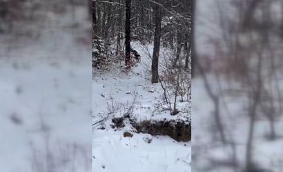 Sinop’un Ayancık ilçesinde, Çangal Dağı mevkisinde kış manzarasını izlemeye giden bir vatandaş, ormanlık alanda gezinti sırasında iki karaca ile karşılaştı.