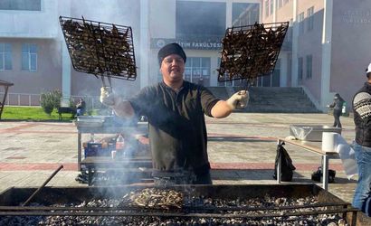 Sinop Üniversitesi Öğrenci Yaşam Merkezi'nde düzenlenen 10. Hamsi Şenliği'nde yaklaşık 1 ton hamsi misafirlere sunuldu.