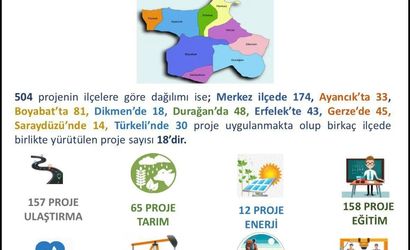Yatırımların ilçelere dağılımında Merkez ilçe 174 projeyle ilk sırada yer aldı. Diğer ilçelerdeki proje sayıları şu şekilde: Boyabat 81, Durağan 48, Gerze 45, Erfelek 43, Ayancık 33, Türkeli 30, Dikmen 18, Saraydüzü 14. Birden fazla ilçeyi kapsayan ortak projelerin sayısı ise 18 olarak bildirildi.