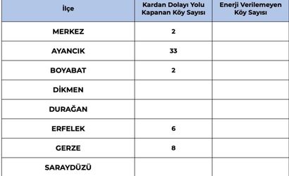 İlçelerdeki daralma şu şekilde gerçekleşti: Merkezde 13'ten 3'e, Ayancık'ta 71'den 41'e, Boyabat'ta 7'den 2'ye, Dikmen'de 9'dan 3'e, Erfelek'te 32'den 6'ya, Gerze'de 12'den 5'e ve Türkeli'nde 32'den 6'ya geriledi.