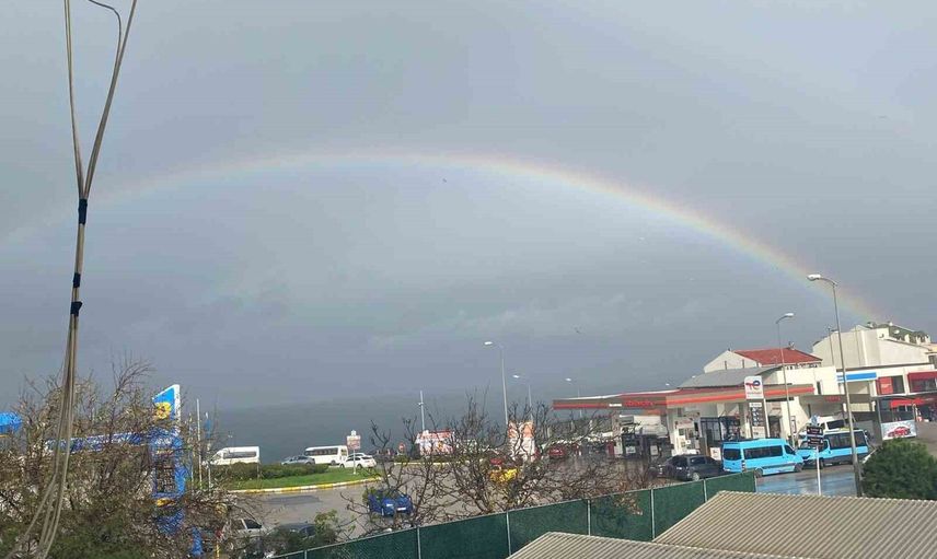 Şehir merkezinden ve sahil kesimlerinden net şekilde gözlemlenen gökkuşağı, mahalle sakinleri tarafından cep telefonlarıyla kaydedildi. Ortaya çıkan manzara, vatandaşların ilgisini çekti.