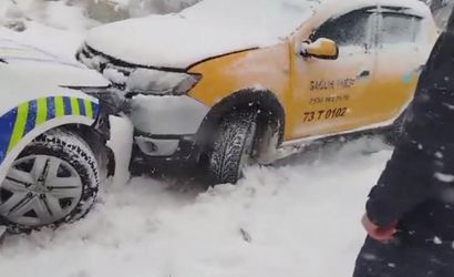Kazaya müdahale etmek üzere olay yerine yönelen trafik polisi aracının, buzlanma nedeniyle direksiyon hakimiyetini kaybederek öndeki ticari araca çarpması sonucu her iki araçta maddi hasar oluştu.