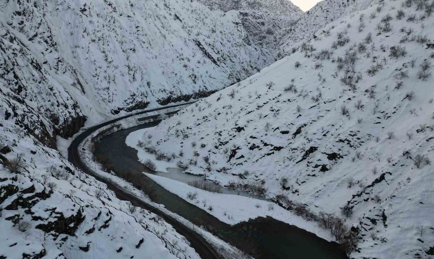 ŞIRNAK’TA KAR YAĞIŞI SONRASI KANLI DERE OLARAK BİLİNEN BÖLGELER BEYAZLARA İÇİNDE KALDI. HAVADAN GÖRÜNTÜLENEN BÖLGE GÖRSEL ŞÖLEN OLUŞTU.