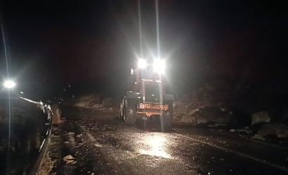 ŞIRNAK’TA ŞİDDETLİ YAĞIŞ SONRASI DAĞDAN KOPAN KAYA PARÇALARI YOLU TRAFİĞE KAPATTI. DEV KAYA PARÇALARI GÜÇLÜKLE YOLDAN ÇIKARILDI.