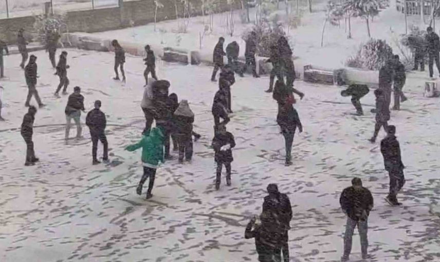 Okul bahçelerinde toplanan öğrenciler, kartopu oynamaktan kaymaya, birlikte gülüşüp eğlenmeye kadar çeşitli etkinliklerle karlı havanın keyfini çıkardı. Çocukların neşesi, soğuk havaya rağmen yüzlerde sıcak anlar bıraktı.