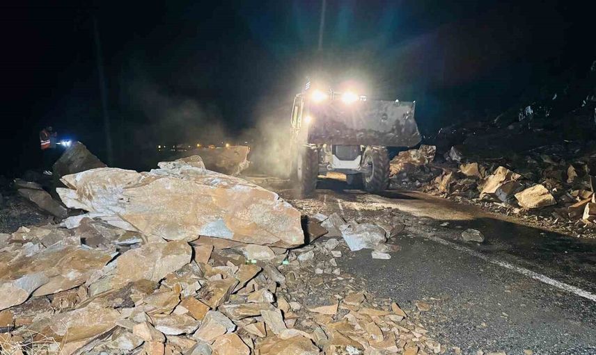 Şırnak’ta, kapanan ilçe yolunu açmaya çalışan ekipler çalışmaları sürdürürken büyük tehlike atlattı. dün akşam saatlerinde aşırı yağış nedeniyle kapanan yolun açılması için görev yapan ekiplerin bulunduğu sırada dağdan kopan kaya parçaları aniden yola savruldu.