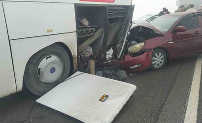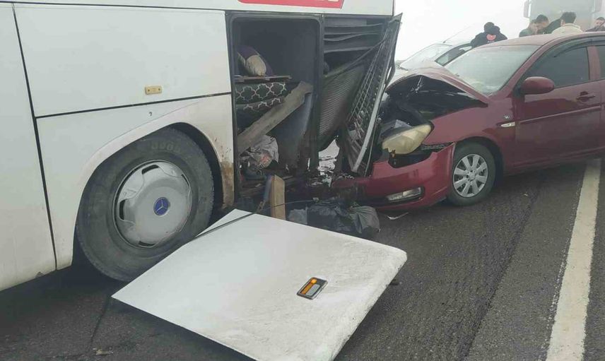 Yolcu otobüsü ve otomobillerin karıştığı kaza, yaralılar olduğu bildirildi