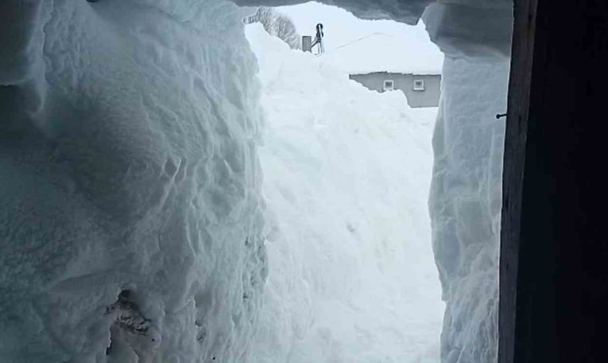 Köyde kar kalınlığının 3 metreye ulaştığı bölgede, ahır kaparasını bulamayan Şahin, dün sabah saatlerinden itibaren bölgeyi temizlemeye başladı.