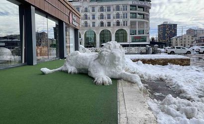 SİVAS’TA KAR YAĞIŞINI SANATA DÖNÜŞTÜREN FATİH COŞKUN, KARDAN ADAM YAPMAK YERİNE KARDAN ASLAN YAPTI. COŞKUN’UN KAŞIK YARDIMIYLA 3 SAAT BOYUNCA İNCE İNCE ŞEKİLLENDİRDİĞİ KARDAN ASLAN, GÖRENLERİN İLGİSİNİ ÇEKİYOR.