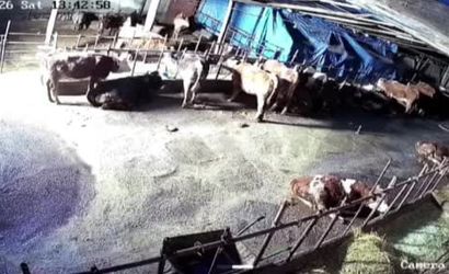 Çatının çöküşünü fark eden çevre sakinleri kısa sürede müdahale için toplandı ve enkaz altındaki hayvanlara yardım etti. Olayın çökme anı saniye saniye güvenlik kamerasına yansıdı.