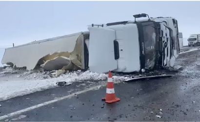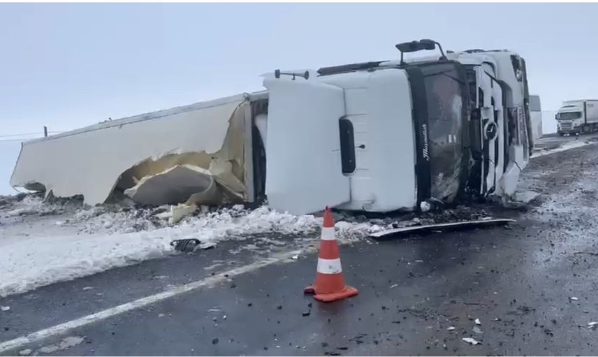 Siverek-Şanlıurfa kara yolunun 20’nci kilometresinde meydana gelen kazada, seyir halindeki tırın kar ve buzlanma nedeniyle kontrolden çıkarak devrildiği bildirildi.