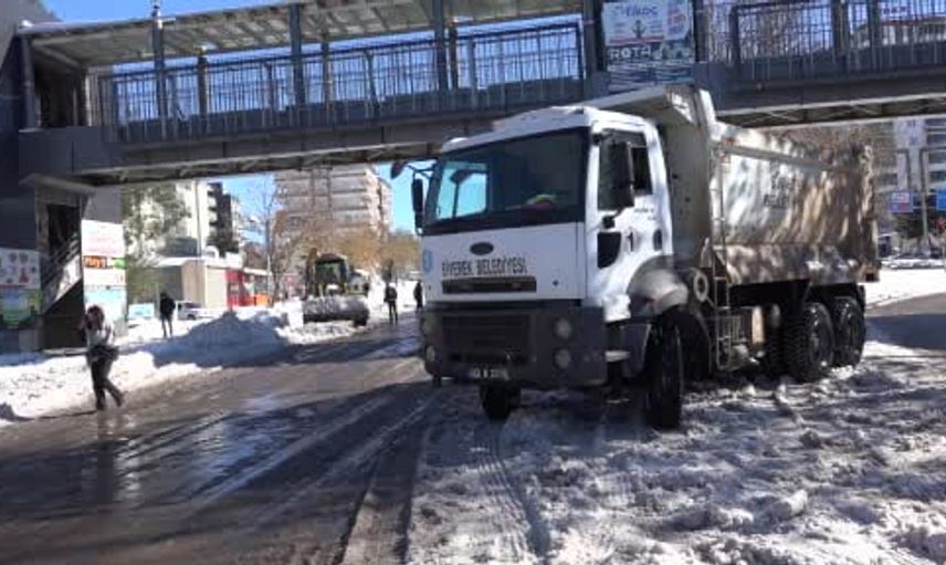 Siverek’te kar yığınları kamyonlarla şehir dışına çıkarılıyor