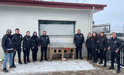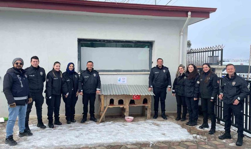 Elazığ'ın Sivrice ilçesinde görevli Sivrice İlçe Emniyet Müdürlüğü personeli, dondurucu soğuklara maruz kalan sokak kedilerini korumak amacıyla kendi imkanlarıyla kedi evi yaptı.
