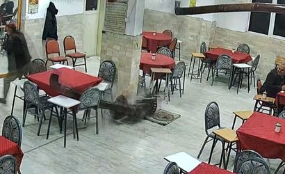 DENİZLİ’DE DUMAN TÜTEN SOBANIN ÜZERİNE GÜZEL KOKMASI İÇİN KOLONYA DÖKEN İŞLETME SAHİBİ, MÜŞTERİNİN "YAKARSAN DAHA İYİ KOKAR" ŞEKLİNDEKİ AKIL ALMAZ TAVSİYESİNE UYUNCA FACİANIN EŞİĞİNDEN DÖNÜLDÜ. ÇAKMAĞIN ÇAKILMASINDAN BİR SÜRE SONRA SOBANIN BOMBA GİBİ PATLADIĞI O DEHŞET ANLARI GÜVENLİK KAMERASINA YANSIRKEN, YAN MASADAKİ VATANDAŞLARIN PATLAMAYA RAĞMEN İSTİFİNİ BOZMAMASI DİKKATLERDEN KAÇMADI.