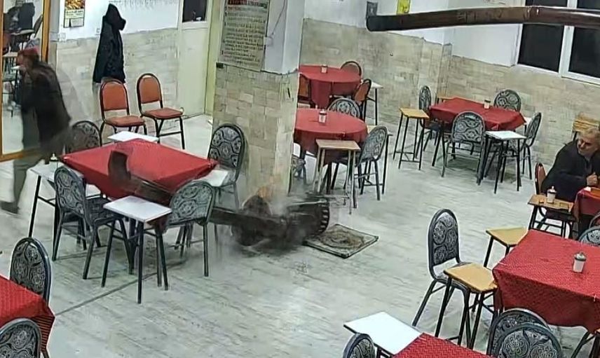 Söğütlüler Kıraathanesi'nde meydana gelen olayda, içeride duman tüten sobanın üzerine güzel koku yayması amacıyla kolonya döken işletme sahibi, müşterinin "yakarsan daha iyi kokar" önerisini kabul etti. Kısa süre sonra sobada şiddetli bir patlama yaşandı; anlar güvenlik kamerasına yansıdı.