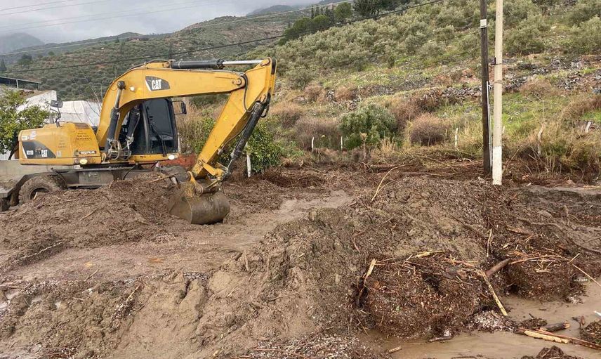 Güllübahçe Mahallesi'nde yaşanan dere taşkınları nedeniyle kapanan karayolunun ulaşıma açılması için belediye iş makineleri ve personeli ile Devlet Su İşleri ve Söke Ovası Sulama Birliği ekipleri koordineli çalıştı.