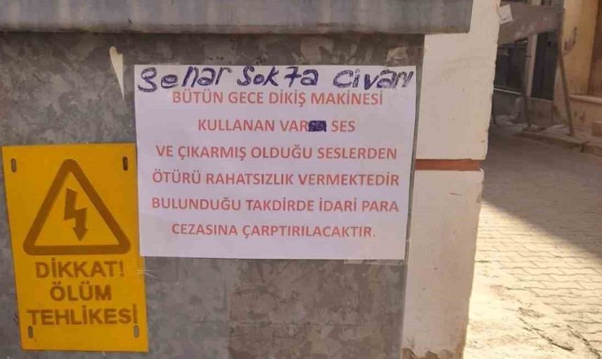 Aydın'ın Söke ilçesi, Atatürk Mahallesi'nde mahalle sakinleri, gece saatlerinde dikiş makinesi kullanarak gürültü yaptığı öne sürülen bir şahsı afişle uyardı. Senar Sokak'ta yaşanan olay, mahalledeki huzuru bozdu.