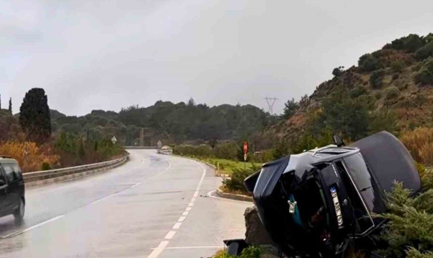 Söke'de otomobil refüje devrildi: 2 kişi yaralandı