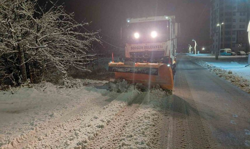 Gece etkisini göstermeye başlayan kar yağışının ardından Sorgun Belediyesi ekipleri, gece ve sabahın ilk ışıklarıyla birlikte kar küreme ve tuzlama çalışmalarına başladı. Ekipler, ilçe genelinde ulaşımın aksamaması için yoğun mesai harcıyor.