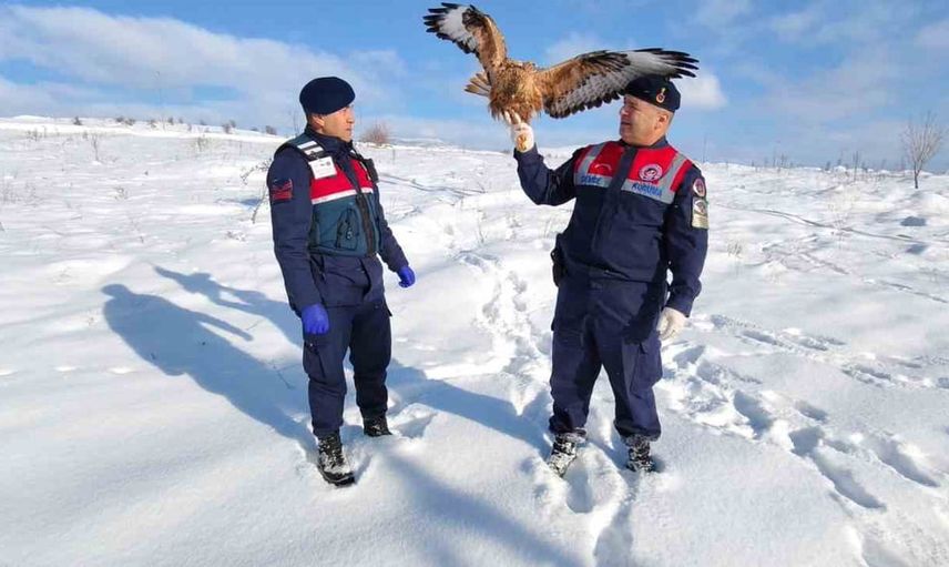 Jandarma ekipleri tarafından bulunan kuş, tedavi için ilgili kuruma teslim edildi