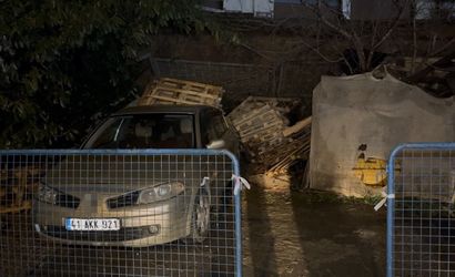 Çöken bloklar ve devrilen ahşap paletler, park halinde bulunan bir araçta maddi hasara yol açtı. Olayın bildirilmesinin ardından itfaiye, polis ve zabıta ekipleri sevk edildi.