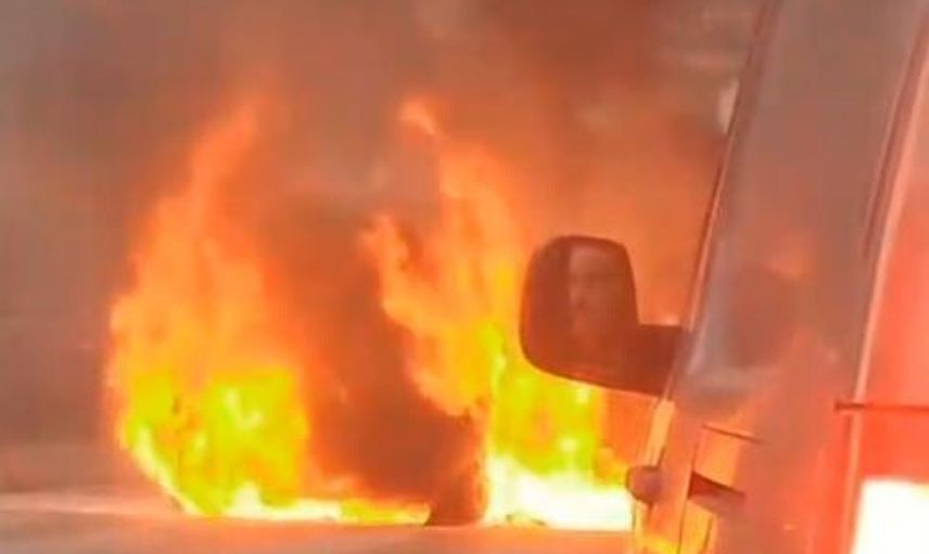Seyir halindeki hafif ticari araçtan dumanlar yükselmeye başladı. Dumanları fark eden sürücü aracı durdurup dışarı çıktı. Ancak yakıtın etrafa yayılması sonucu alevler kısa sürede aracın tamamını ve yol bölümünü sardı.