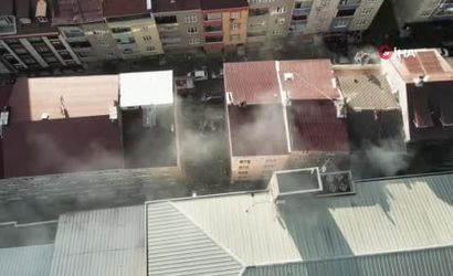 Dumanları gören vatandaşlar durumu polis, itfaiye ve sağlık ekiplerine bildirdi. İtfaiye ekipleri alevlere müdahaleyi çevredeki binanın çatısından gerçekleştirdi.