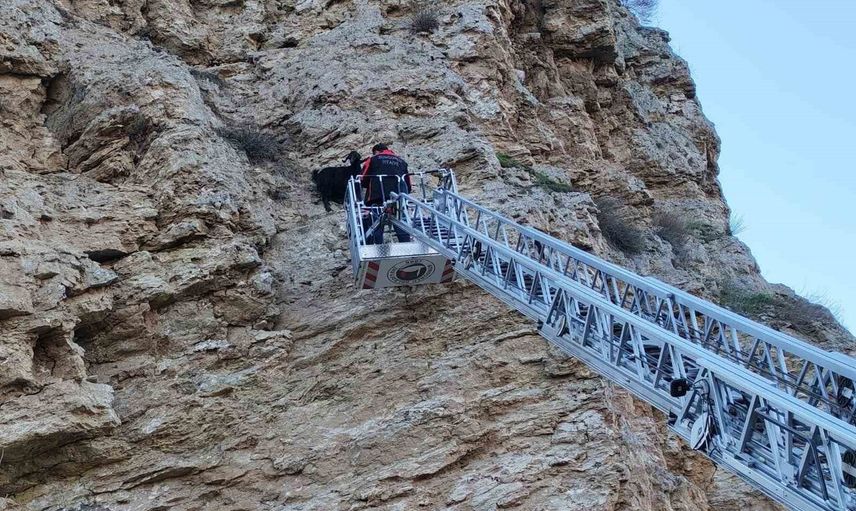 İhbar üzerine bölgeye ulaşan itfaiye ekipleri, itfaiye aracının merdiven bölümünü kullanarak keçilerin bulunduğu noktaya ulaştı. Ekiplerin dikkatli çalışması sonucu keçiler bulunduğu yerden alınarak sahiplerine teslim edildi.