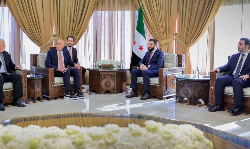 SURİYE DEVLET BAŞKANI AHMED EŞ-ŞARA, ABD'NİN ANKARA BÜYÜKELÇİSİ VE SURİYE ÖZEL TEMSİLCİSİ TOM BARRACK'I KABUL ETTİ.