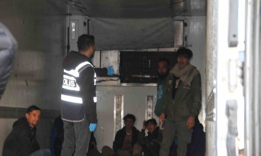 Suşehri İlçe Emniyet Müdürlüğü ekiplerinin durdurduğu, sürücülüğünü M.U.’nun yaptığı 34 ALZ 613 plakalı tırın, üzerinde bulunan 33APV 36 plakalı dorsesinde yapılan kontrolde 28 kişi yakalandı.