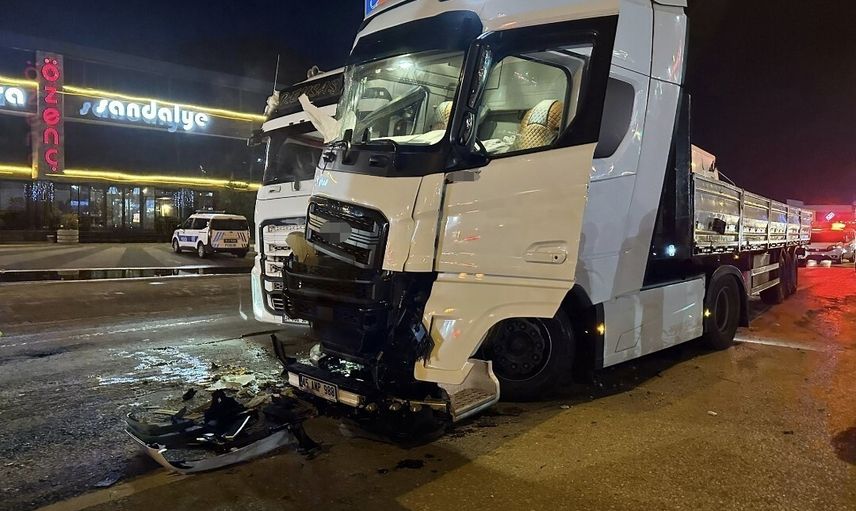 Çarpışmaya karışan araçların plakaları 34 FBU 301 ile 45 ANP 988 olarak bildirildi. Yan yana çarpışan tırlarda maddi hasar meydana geldi.
