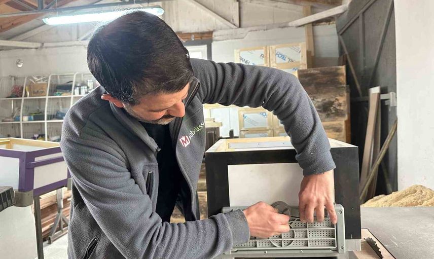 Bursa’nın İnegöl ilçesinde arıcılıkla uğraşan Hayri Soylu, arıcıların talepleri doğrultusunda sarı-kırmızı, sarı-lacivert, siyah-beyaz, yeşil-beyaz gibi renklerde ısı yalıtımlı kovan üretimi yapıyor.