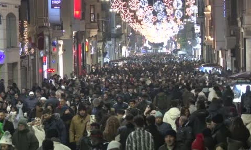 Beyoğlu'ndaki Taksim Meydanı ile İstiklal Caddesi yeni yılı karşılamak isteyen yerli ve yabancı turistlerin oluşturduğu kalabalıkla dikkat çekti. Bölgedeki yoğunluk ve kutlama atmosferi, havadan yapılan çekimlerle kayda geçti.