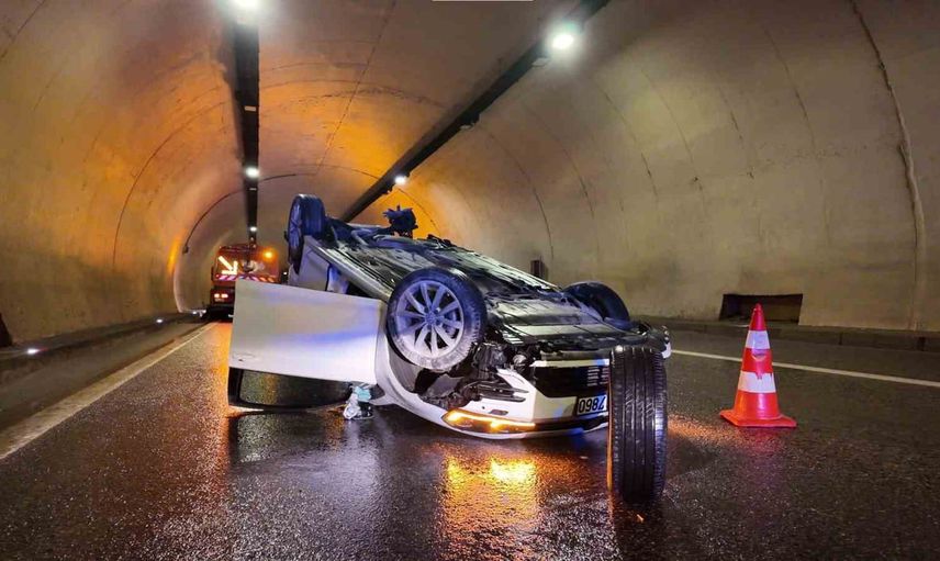 Tantavi Tüneli'nde yağış sonrası trafik kazası: Otomobil takla attı