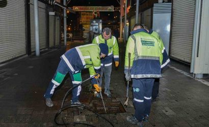 Tarihi Çarşı ve Hanlar Bölgesi'nde gece yürütülen mazgal temizliği