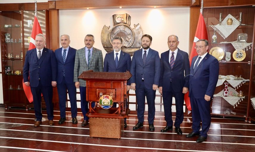 Tarım ve Orman Bakanı İbrahim Yumaklı (ortada), Rize Valiliği ve AK Parti İl Başkanlığı'nı ziyaret etti. Valilik şeref defterini imzalayan Yumaklı, Rize Valisi İhsan Selim Baydaş (sol3) ile görüştü.