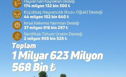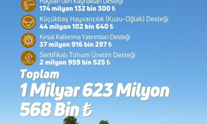 Tarım ve Orman Bakanı İbrahim Yumaklı yaptığı açıklamada, çiftçilere toplam 1 milyar 623 milyon lira tutarında tarımsal destek ödemesinin gerçekleştirildiğini duyurdu.