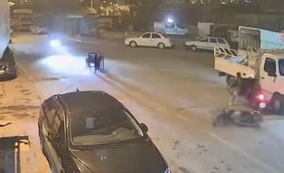 Kaza sonrası yerde kalan sürücü ve yolcu, motosikleti bırakarak olay yerinden hızla kaçtı. Olay anı çevredeki bir iş yerinin güvenlik kamerasınca saniye saniye kaydedildi.