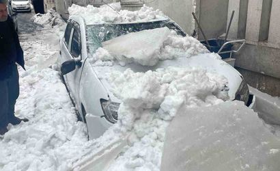 Bitlis'in Tatvan ilçesi merkezinde, Tatvan Belediyesi'ne ait ilçe merkezindeki ek hizmet binasının çatısında biriken kar kütleleri aniden kayarak düştü. Binanın arka tarafında park halinde bulunan bir otomobilin üzerine düşen kar, araca büyük maddi hasar verdi.
