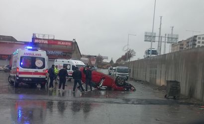 Direksiyon kontrolünü kaybeden otomobil köprülü kavşaktan düştü