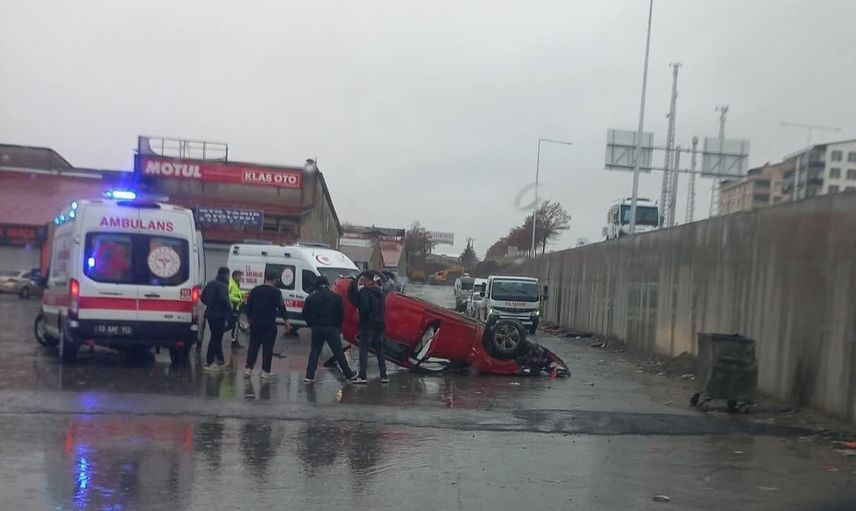 Kaza anı, sanayi bölgesindeki bir iş yerinin güvenlik kamerasına saniye saniye yansıdı. Yaralanan sürücü ile yanında bulunan kişi, olay yerine sevk edilen sağlık ekipleri tarafından hastaneye kaldırıldı.