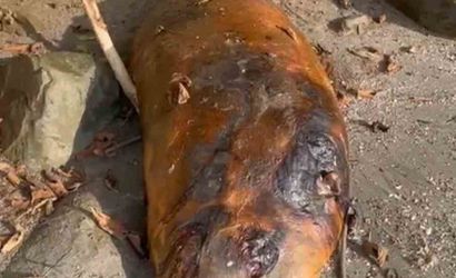 MARMARA DENİZİ’NDEN TEKİRDAĞ’IN SÜLEYMANPAŞA İLÇESİ BEYAZKÖY MEVKİİNDE KIYIYA VURAN VE ÇÜRÜMEYE BAŞLAYAN DENİZ CANLISI, VATANDAŞLARIN MERAK KONUSU OLDU.