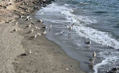 Öte yandan kıyıda gözlenen martılar, rüzgâr ve dalgaların oluşturduğu hareketlilik içinde adeta yiyecek kapma yarışına tutuştu.