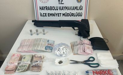 Tekirdağ'ın Hayrabolu ilçesinde düzenlenen uyuşturucu operasyonunda 7 kişi gözaltına alındı. Aramada, 46 fişek bonzai, 14 sentetik hap, 44 bin 340 lira, 1 pompalı tüfek ve 3 kartuş ele geçirildi.